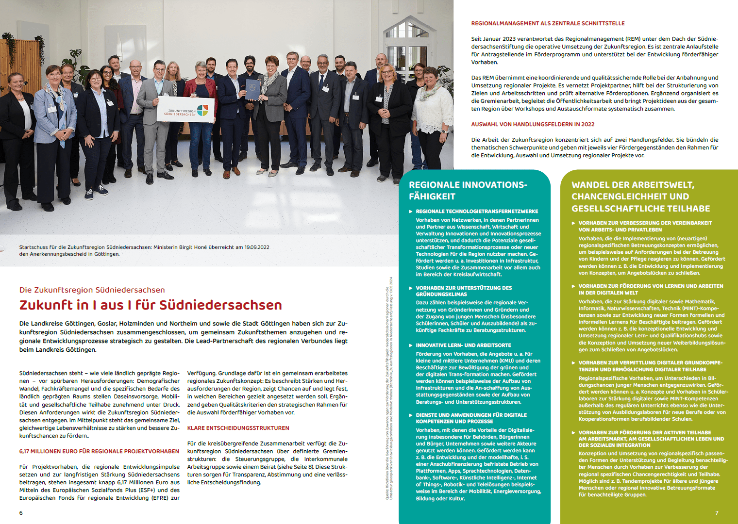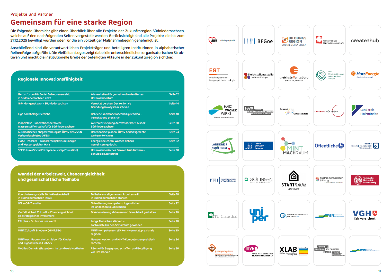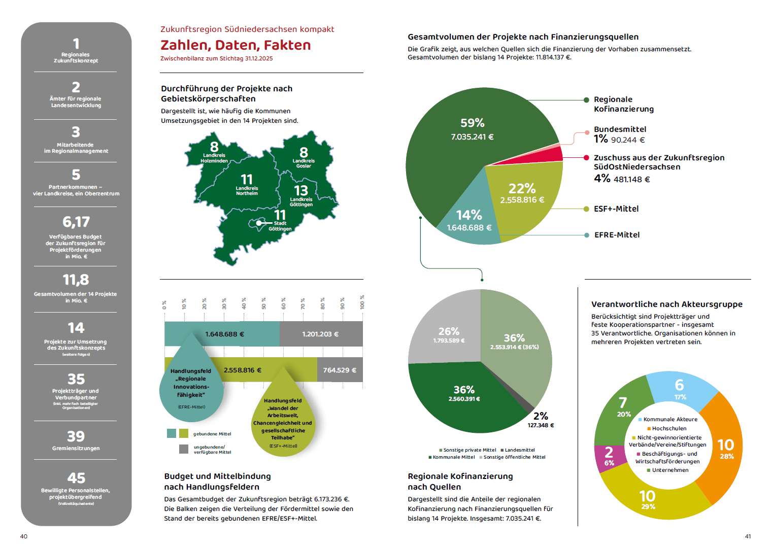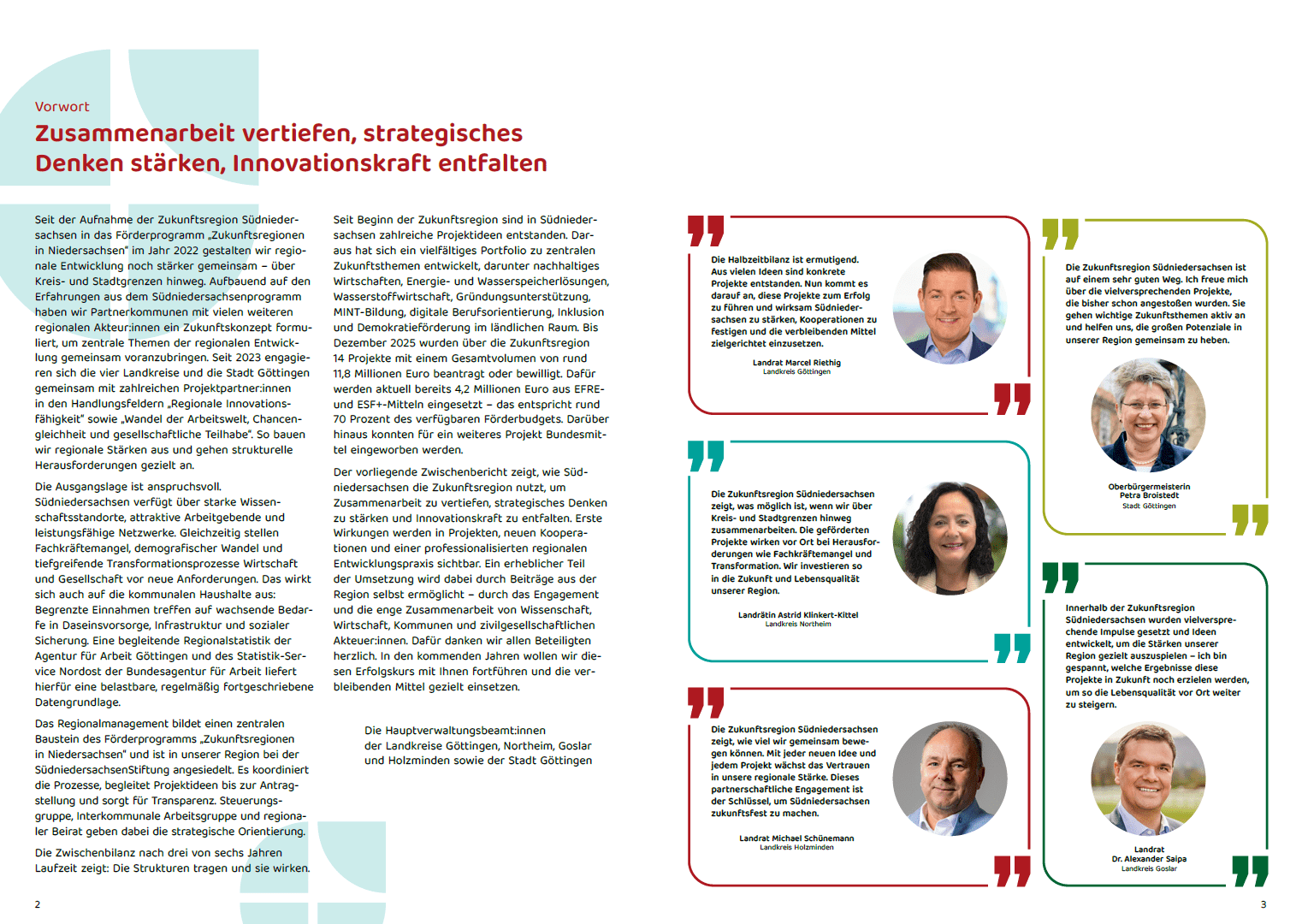 Der Bericht gibt einen Überblick über die Projekte, die seit 2023 in der Region angestoßen wurden. Insgesamt wurden 14 Projekte mit einem Gesamtvolumen von rund 11,8 Millionen Euro auf den Weg gebracht. Sie greifen zentrale Zukunftsthemen der Region auf – darunter nachhaltiges Wirtschaften, Innovationsförderung, MINT-Bildung, Inklusion und gesellschaftliche Teilhabe. Neben den Projekten stehen auch die Menschen und Organisationen im Fokus, die diese Entwicklungen möglich machen.